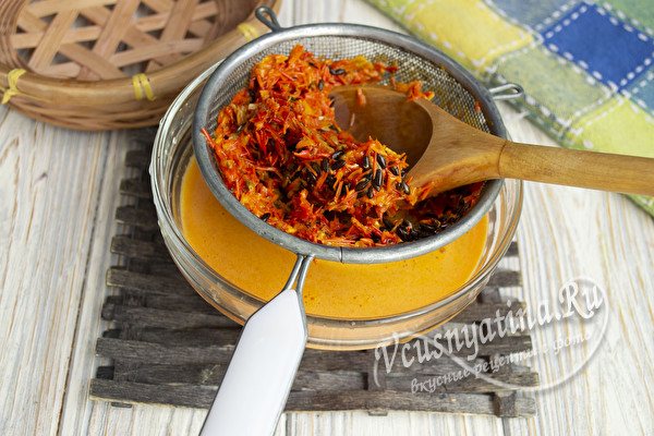 - Полученный сок процедите через чистую хлопчатобумажную ткань или несколько слоев марли.