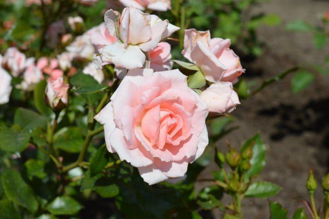 Грация — еще одна эффектная кустовая спрей роза, цветущая розовыми некрупными цветками. Кустик может вырастать до 80 см. Имеется приятный, легкий аромат. Сорт часто используется для составления букетов. В срезке растения стоят долго.