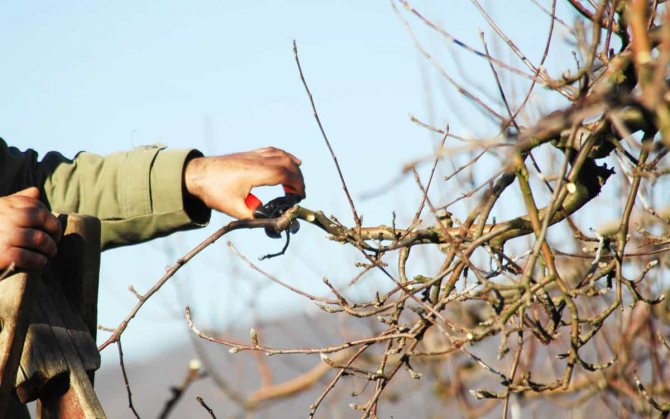 Обрезают яблоню, чтобы сразу же осуществить несколько задач: