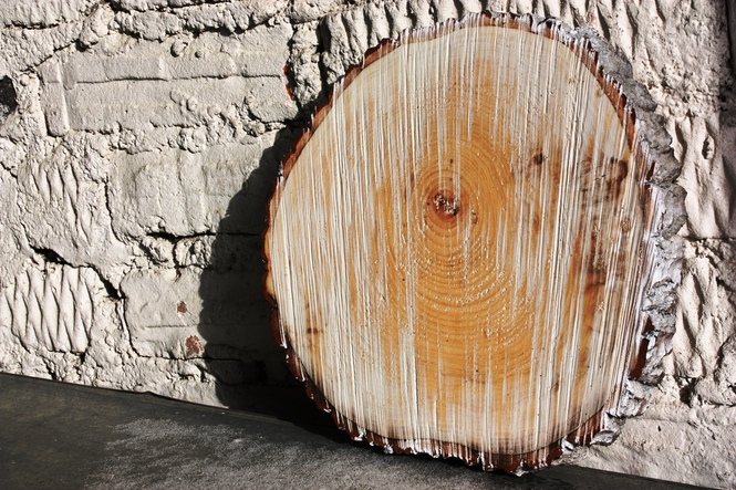 Воск придает спилу из березы (на фото) исключительные влагооталкивающие свойства, идеальную гладкость и благородный блеск. Но, к сожалению, воск легко может покрыться белесыми пятнами от влаги и царапинами от механического воздействия. Это, конечно, все поправимо, но покрытие придется реставрировать. Если ваша цель создать роскошную интерьерную композицию из деревянных спилов в родовом поместье, которая сохранялась бы десятилетиями, то покрытие воском это хороший выбор.