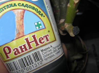 - для замазки используют садовый вар, биобальзам Robin Green, пасту РанНет и другие растворы; — предпочтение лучше отдавать тем средствам, в составе которых как можно меньше продуктов нефтепереработки и другой «химии;