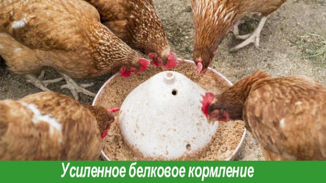 Для хорошей яйценоскости в рационе птицы должно быть высокое содержание протеинов. Следовательно, несушек в период линьки нужно усиленно кормить белком.