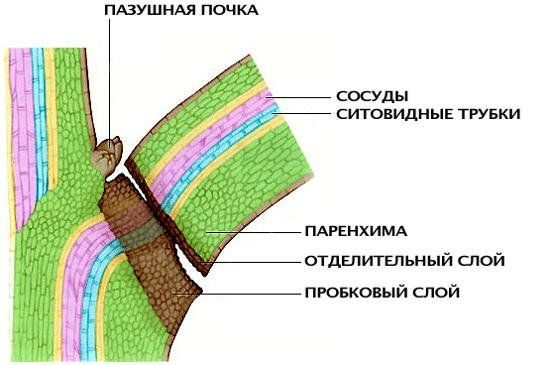 Отделительный слой клеток отделяет лист от ветки, в результате чего происходит процесс листопада