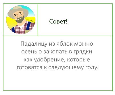 Иногда могут опадать уже практически дозревшие плоды, это нормально для определенных сортов: Маяк, Мантен. Осыпавшиеся яблоки собирают и оставляют отлеживаться.