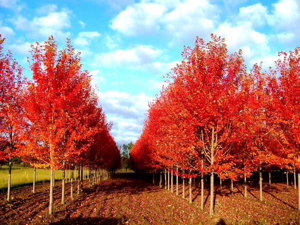 «Redspire». Листья культивара имеют глянцевый зеленый цвет летом, но осенью становятся желто-золотыми и красно-оранжевыми. Форма кроны пирамидальная.