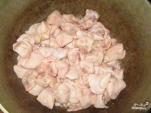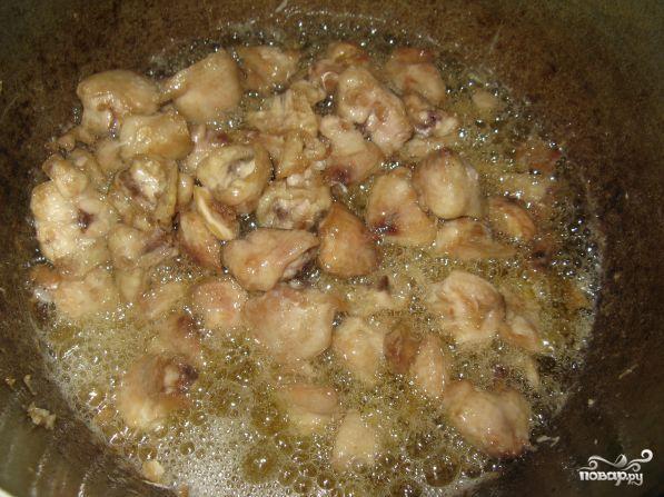 В казане с маслом обжариваем до золотистой цвета гузки.
