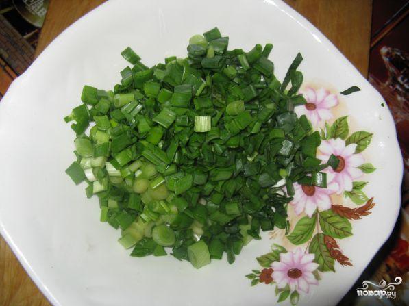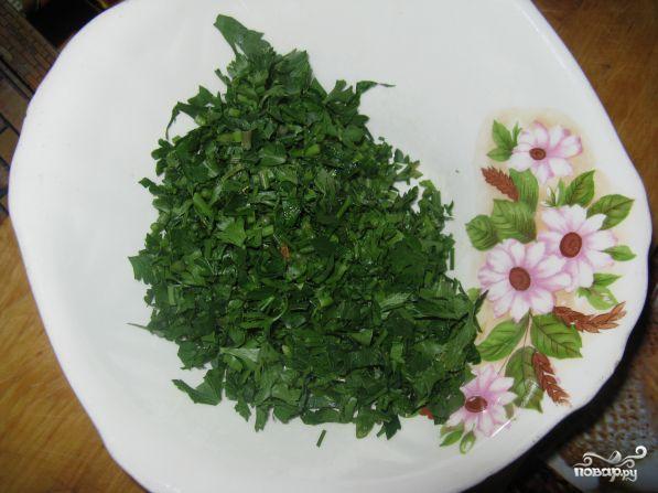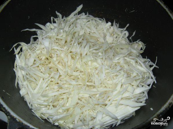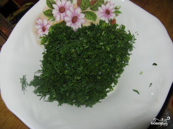 - Добавить мелко нашинкованную капусту вместе с порубленной зеленью.
