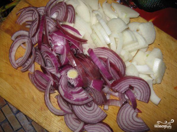 - С лука снимите шелуху, нарежьте овощ кубиками небольшой величины.