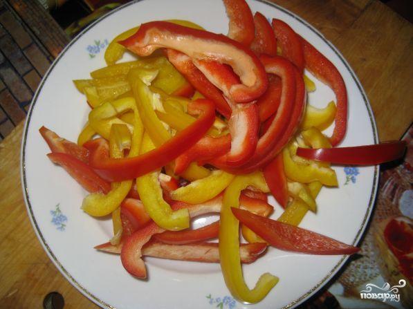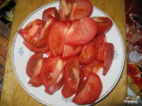 - Овощи, а именно томаты со сладким перцем, мелко порубить.
