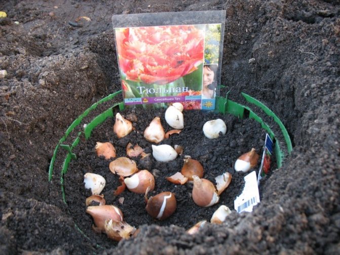 Некоторые садоводы помещают луковицы тюльпанов в специальные корзины для посадки луковичных. Это приспособление затрудняет углубление клубней в землю. Однако корзины не уберегут луковицы от измельчения и обрастания детками, что в итоге погубит растение. Однако пластиковые корзины значительно упрощают задачу по извлечению луковиц из земли.