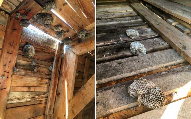 В ситуации, когда гнездо насекомых находится в отдаленном углу и не представляет серьезной опасности, лучше его не тревожить. Осенью его обитатели разлетятся и погибнут.