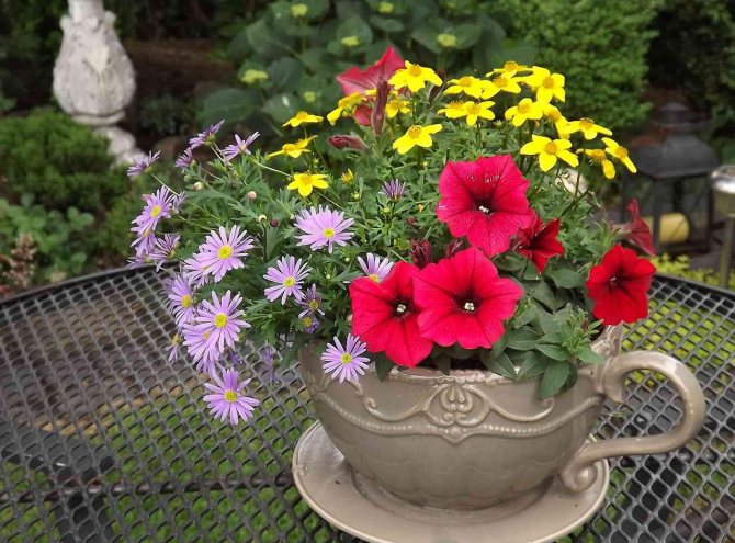 Клумба из чашки на даче