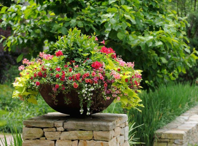 Клумба в горшке на даче