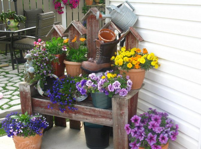 - различные вазоны, использование нестандартных предметов;