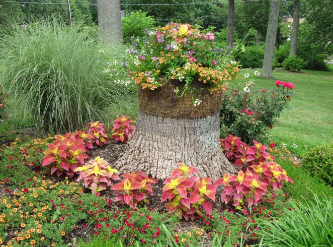 Клумба из пня на даче