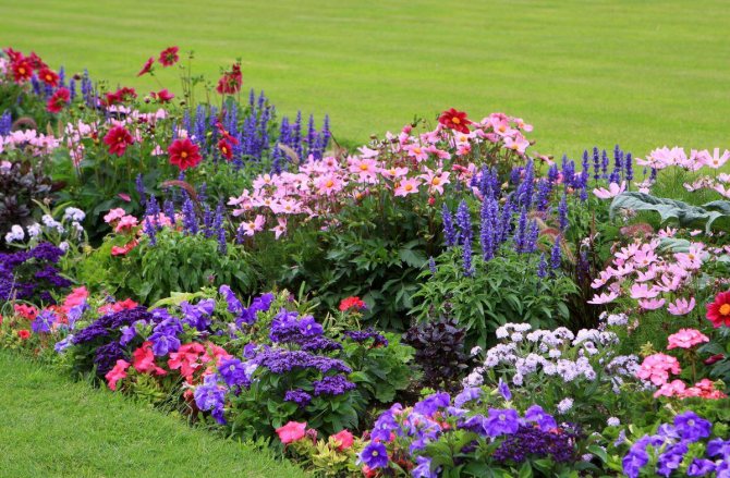 Разнообразие цветов на клумбе