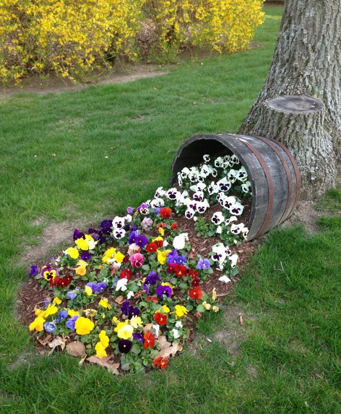 Клумба из бочки на даче