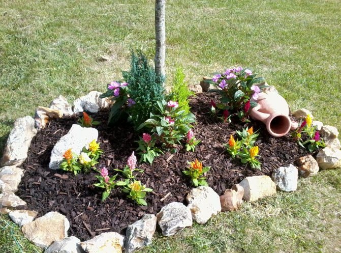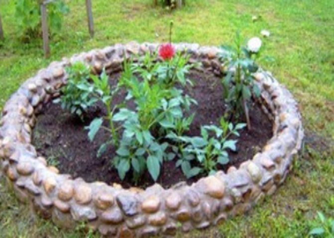 Цветочная клумба, огороженная камнями