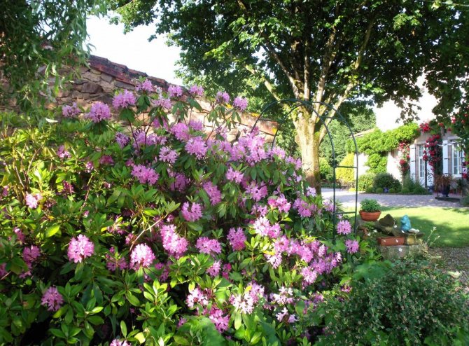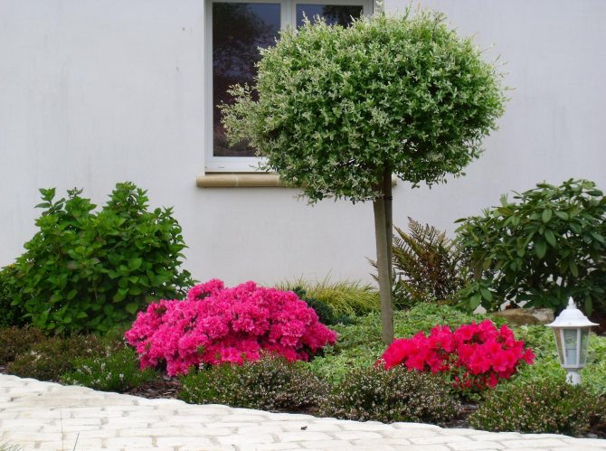 Клумба из азалий на даче