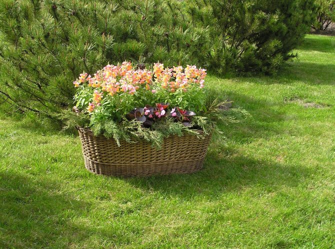 Передвижная клумба в корзине