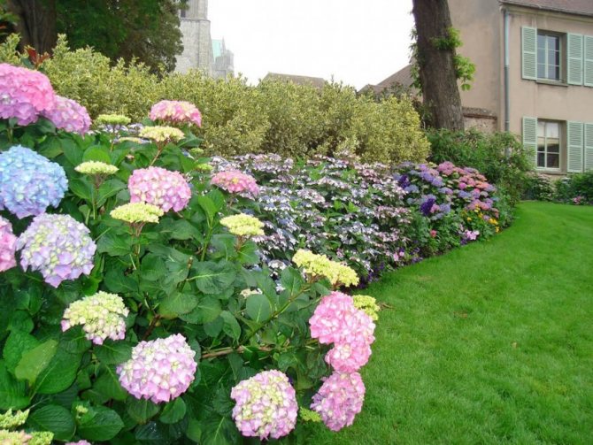 Клумба из гортензий на даче