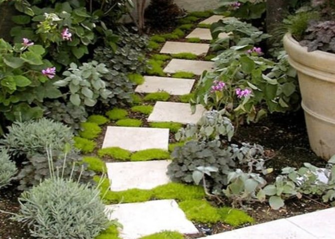 Органичное сочетание плиточной дорожки и растительности