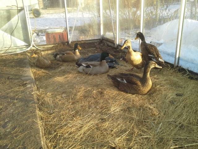 Для зимовки уткам устраивают на полу глубокую подстилку, купальню в сарае ставить нельзя, вода вся будет на полу. Поилки в сарае тоже нужны такие, из которых утки не смогут разливать воду, т. е. ниппельные.