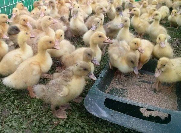 Выведенных утят растят так же, как и другой молодняк уток. Если есть возможность давать им планктон из водоемов, можно кормить таким кормом. Но он должен быть свежим. Так как эти условия соблюсти очень сложно, то утят выкармливают обычным стартовым комбикормом.