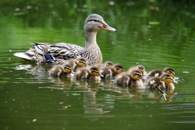 При этом есть такой момент, что утята часто лучше выводятся под наседками. Если есть утки другой породы, которые хорошо сидят на яйцах, будущих башкирцев можно подложить им. Нужно учитывать, что если утка села, то, высиживая птенцов, она практически не сходит с гнезда. Поэтому будущих наседок как раз не рекомендуется ограничивать в кормах. Даже ожирев, они потеряют в весе в два раза при высиживании яиц.