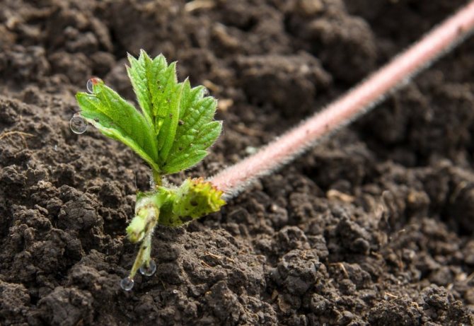 Молодые усы клубники помещают на сутки в воду с добавлением стимулятора корнеобразования. Если нет возможности посадить саженцы сразу, то их оставляют в воде на 2 – 3 недели. За этот период клубника дает хорошие корни. Затем ее переносят в открытый грунт на подготовленной грядке.