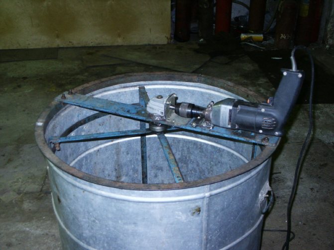 Чтобы смастерить электромедогонку, понадобится схема и специальные чертежи, которые значительно облегчат задачу. Пчеловод должен взять бочку, сделать 2 отверстия снизу. Благодаря данным отверстиям будет осуществляться слив меда. В центр бочки крепится доска деревянная, которая послужит основой будущей центробежки. Важно установить ее таким образом, чтобы она не перекрывала отверстия.