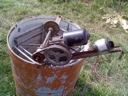Медогонка с электроприводом своими руками делается достаточно просто, если имеются элементарные познания в электричестве и технике. Для этого достаточно ознакомиться с фото действующих аппаратов и по их принципу создать что-то для себя. К счастью, на сегодня существует множество подробных инструкций с фото и видео, как же сделать аппарат для выкачивания меда самому. Рассмотрим наиболее простой вариант.