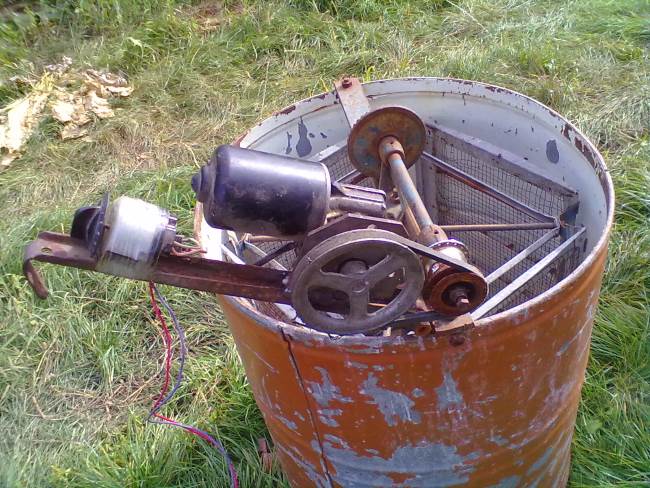Держатели сотов делают из рамочек холодильника, прикрепляя их на изготовленный ранее прямоугольный каркас. Эту конструкцию подсоединяют к педалям (ручной вариант) либо приводу. Конечно, электропривод для медогонки — это лучшее и наиболее практичное решение. Как подсоединить отдельные детали, можно посмотреть на фото и видео из Сети. Следует также учитывать, что отзывы пасечников свидетельствуют о неудобстве использования самодельных агрегатов на больших пасеках, то есть этот вариант подходит только пчеловодам-любителям.
