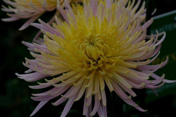 Один из самых популярных сортов хризантем. Отличается богатой палитрой расцветок – белая, зелёная, жёлтая, розовая, сиреневая. Крупные цветки с длинными игольчатыми лепестками достигают 18 сантиметров в диаметре. Цветение начинается в сентябре, в зависимости от региона может продолжаться до конца осени.