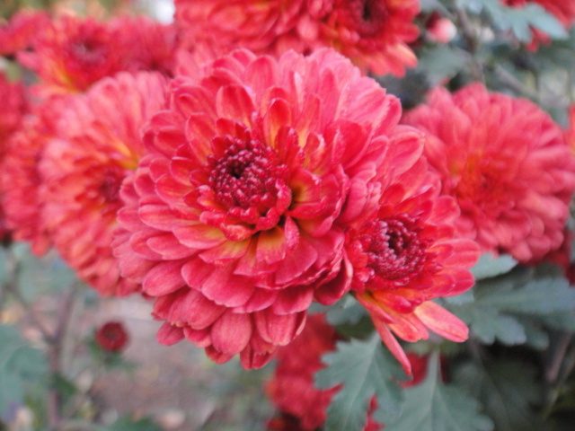 В отличие от одноголовых цветов кустовые хризантемы дают большое количество соцветий на фоне обильной зелени. Они хорошо подходят для декорации сада поздней осенью. Большое количество разновидностей позволяет комбинировать на клумбах растения разной окраски и качества цветов.