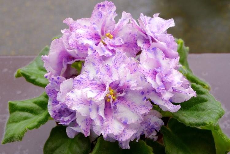 Цветок ярко выделяется на фоне других подвидов. Лепестки нежно-розового окраса, на них разбросаны яркие красные вкрапления. Края лепестков волнистые, за счет этого цветок кажется очень объемным. На ощупь махровые не только листья, но и цветы. Характерной чертой является обильное и длительное цветение.