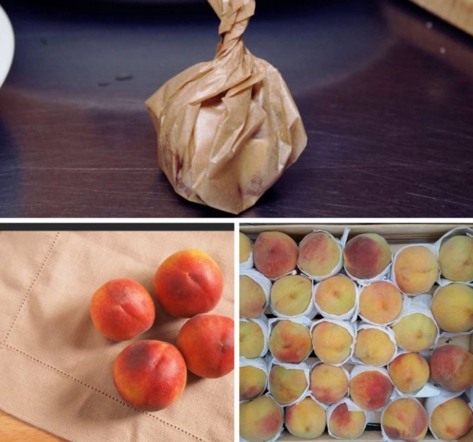 Если есть желание оставить плоды на хранение, для этого их нужно снять недозрелыми и оставить для полного созревания в комнатных условиях, обернув в льняную ткань. Оптимальная спелость будет достигнута через 4–5 дней.