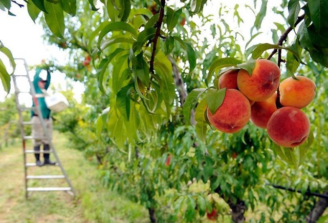 Сажая персик Кремлёвский, стоит сразу купить и высокую стремянку
