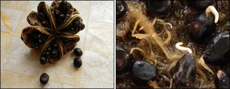 На фото: созревшие и пророщенные в сфагнуме семена древовидного пиона