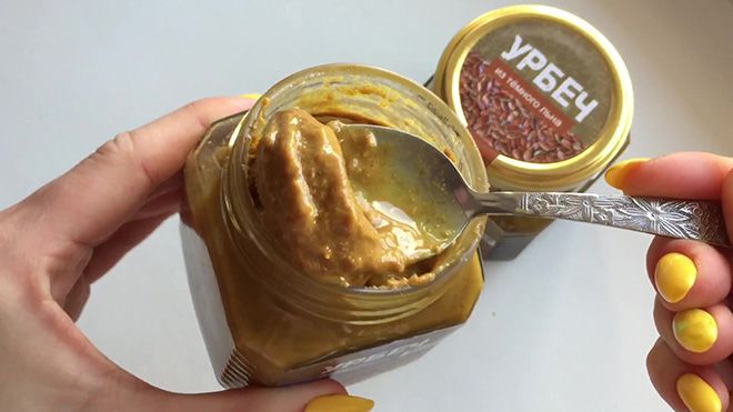 Пасту можно готовить как из темных сортов льна, так и из белых, от вида семян зависит и цвет блюда. Урбеч рекомендуется применять как биологическую добавку при тяжелой физической работе и спортсменам, занимающимся силовыми видами спорта.