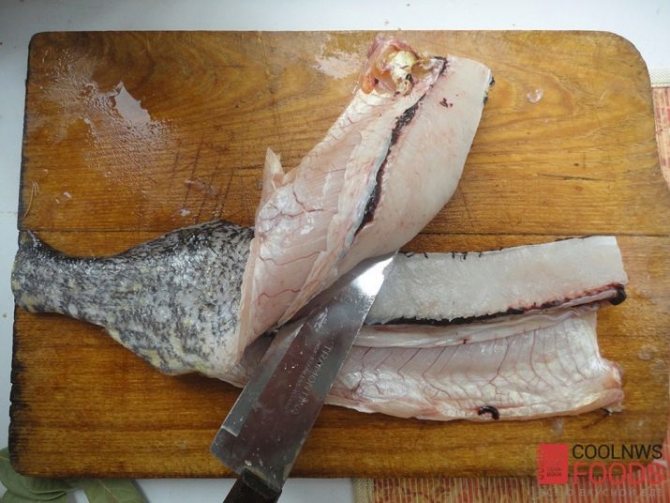 - Размороженную и очищенную рыбу разделите на порционные филе.