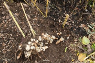 - Первые корешки уходят вглубь почвы, что позволяет топинамбуру быстро адаптироваться к условиям произрастания.