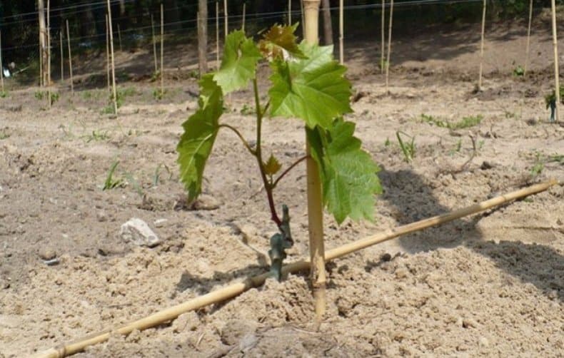 Сажают виноград либо весной, когда прогреется почва, либо осенью, до наступления холодов. Подготовленный участок вскапывают и делают лунки на расстоянии не менее 3-х метров друг от друга. Высаживают сеянцы в траншею размером 60 х 70. На дно её помещают удобрения, смешанные с почвой, на эту смесь ставят саженец, расправляют корешки, заполняют до половины землёй, утрамбовывают и поливают. Как только вода впитается в землю, ямку засыпают полностью.