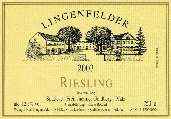 Этикетка немецкого сухого вина рислинг шпатлезе