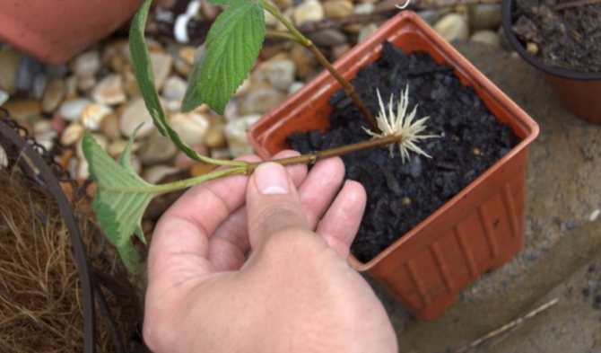 Важно! Укоренение в среднем занимает 3-4 недели, после чего колпак уже не нужен. Подращенные черенки оставляют зимовать в теплом помещении, а весной высаживают во второй половине мая в открытый грунт.
