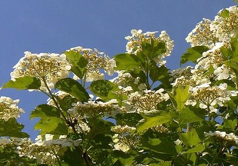 В предзимний и зимний период, встречая где-нибудь деревце калины с яркими красными кистями, мы часто сожалеем, что до сих пор так и не удосужились посадить ее на своем участке. Действительно, ягоды калины бесценны своими витаминными и лечебными свойствами, а само это, казалось бы, простоватое с виду деревце буквально круглый год радует глаз, а по весне еще и обоняние чудным ароматом. Так что посадив калину у своего дома, ни один хозяин не прогадает. Всем хороша калина: и растет быстро, и устойчива к условиям города, и полутень легко переносит. А каким удивительным ароматом может наполнить сад цветущий куст калины! Казалось бы, цветущая калина — растение неброское. Но какое элегантное! У большинства сортов калины цветы белые или кремовые, у некоторых розовые, напоминающие гортензию.