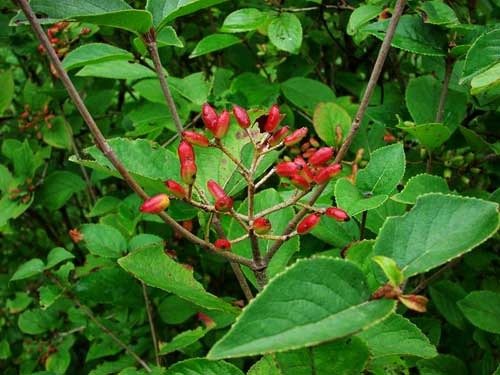 Калина морщинистолистная. Вечнозеленый кустарник до 3 м высотой, с прямыми, густо войлочно опушенными побегами. Листовые пластинки толстые, голые, от яйцевидно-продолговатых до продолговато-ланцетных, блестящие, морщинистые, до 19 см длиной. Цветки желтовато-серые, в верхушечных, щитковидных соцветиях до 20 см в поперечнике. Бутоны появляются осенью, цветение же наступает весной следующего года. Плоды яйцевидные, мелкие, до 0,8 см, первоначально красные, затем черные, блестящие. Растет этот вид очень быстро. Теневынослив. К почве неприхотлив. Засухоустойчив. Хорош в одиночных посадках и небольших рыхлых группах. Заслуживает самого широкого использования в садах и парках крайнего юга России, как наиболее морозостойкая вечнозеленая калина с оригинальной листвой.